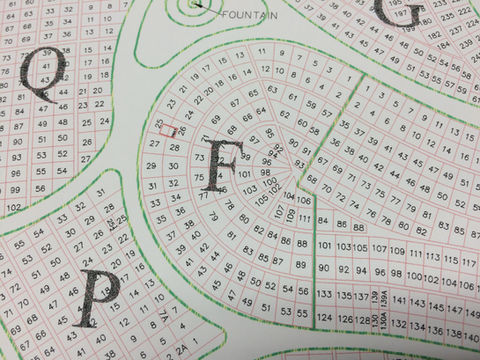 With over 8 miles of paved roadway, traversing nearly 130 acres, finding one grave site out of nearly 40,000 is like searching for the proverbial "needle in the haystack." Mount Olivet is comprised of 36 distinct areas, each varying in number of cemetery lots.